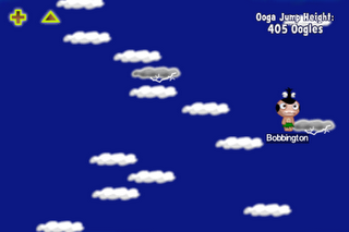 You bounce on clouds and tilt left and right to land on other clouds to bounce even higher. It’s not great, but it’s at least half decent and thus improves Pocket God a million percent, approximately. Hooray!