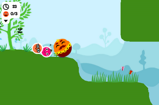 Not, actually, the complete rip-off of Loco Roco that it appears to be. It’s got some ideas in common – tilting to roll little round guys around primary-coloured levels, for example – and from the screenshots you could be forgiven for getting the wrong impression, as I did.