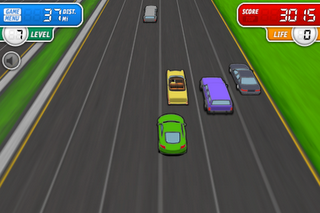 Cars scroll down the screen, you slide your finger left and right so your car avoids them. That’s it.